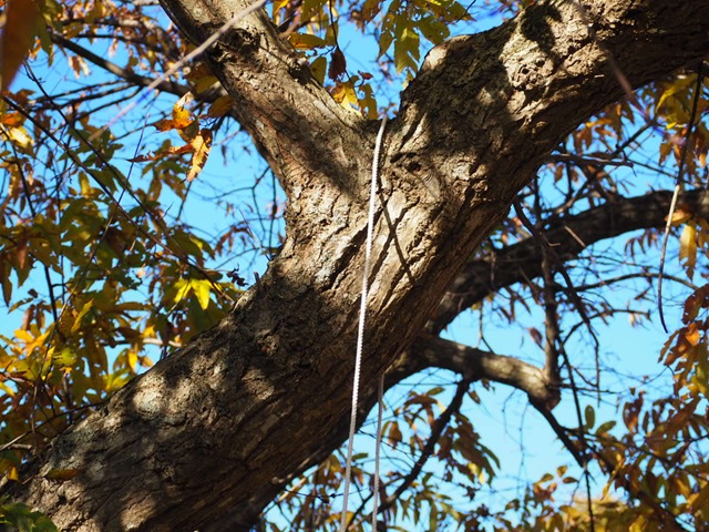 敷地の中で一番安定していて、幹も太い栗の木に決定しました。季節によって日陰もできて、遊ぶにはちょうどいい場所です。