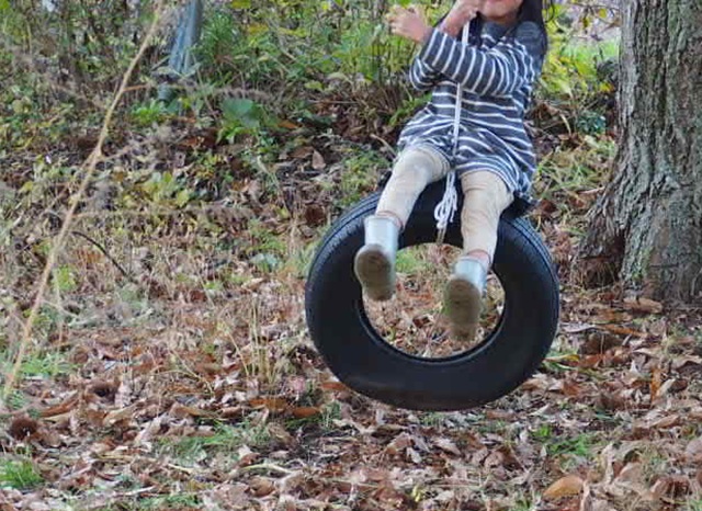 とあるこども園にお邪魔したとき、木にぶら下がったタイヤブランコがありました。